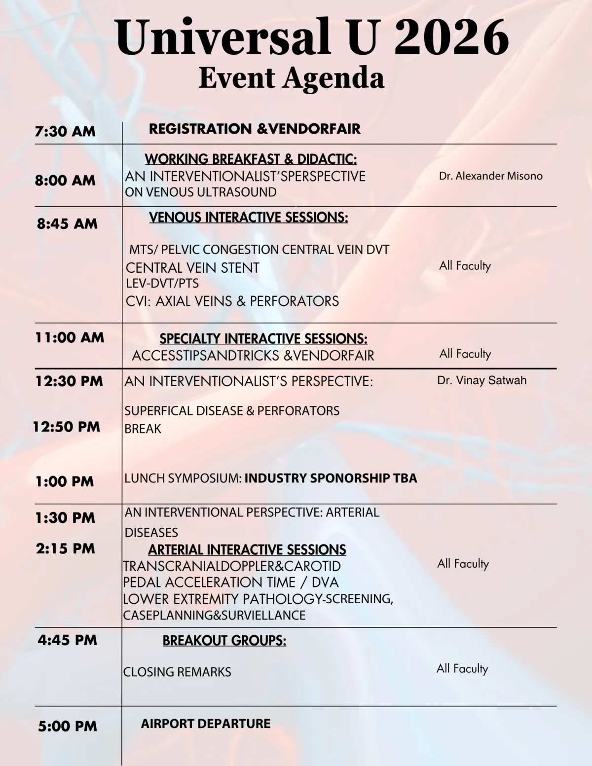 Universal U Agenda includes an arterial and venous programs with lectures and hands on sessions with models and patients.